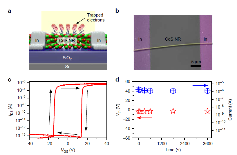 Ultraweak light detectors have wide-ranging important applications such as astronomical observation, remote sensing, laser ranging, and night vision. Current commercial ultraweak light detectors are commonly based on a photomultiplier tube or an avalanche photodiode, and they are incompatible with microelectronic devices for digital imaging applications, because of their high operating voltage and bulky size. Herein, we develop a memory phototransistor for ultraweak light detection, by exploiting the charge-storage accumulative effect in CdS nanoribbon. The memory phototransistors break the power law of traditional photodetectors and follow a time-dependent exponential-association photoelectric conversion law. Significantly, the memory phototransistors exhibit ultrahigh responsivity of 3.8 × 109AW−1 and detectivity of 7.7 × 1022 Jones. As a result, the memory phototransistors are able to detect ultraweak light of 6 nW cm−2 with an extremely high sensitivity of 4 × 107. The proposed memory phototransistors offer a design concept for ultraweak light sensing devices.