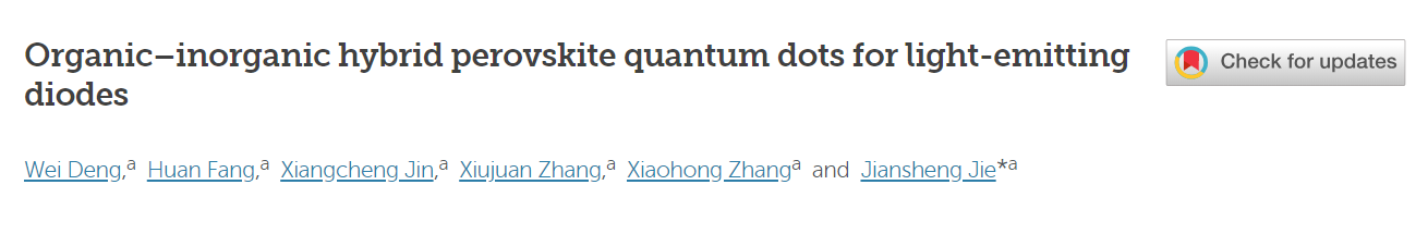 我组受邀在Journal of Materials Chemistry C上撰写的钙钛矿量子点LEDs的综述文章2018年阅读量进入前5%排行榜