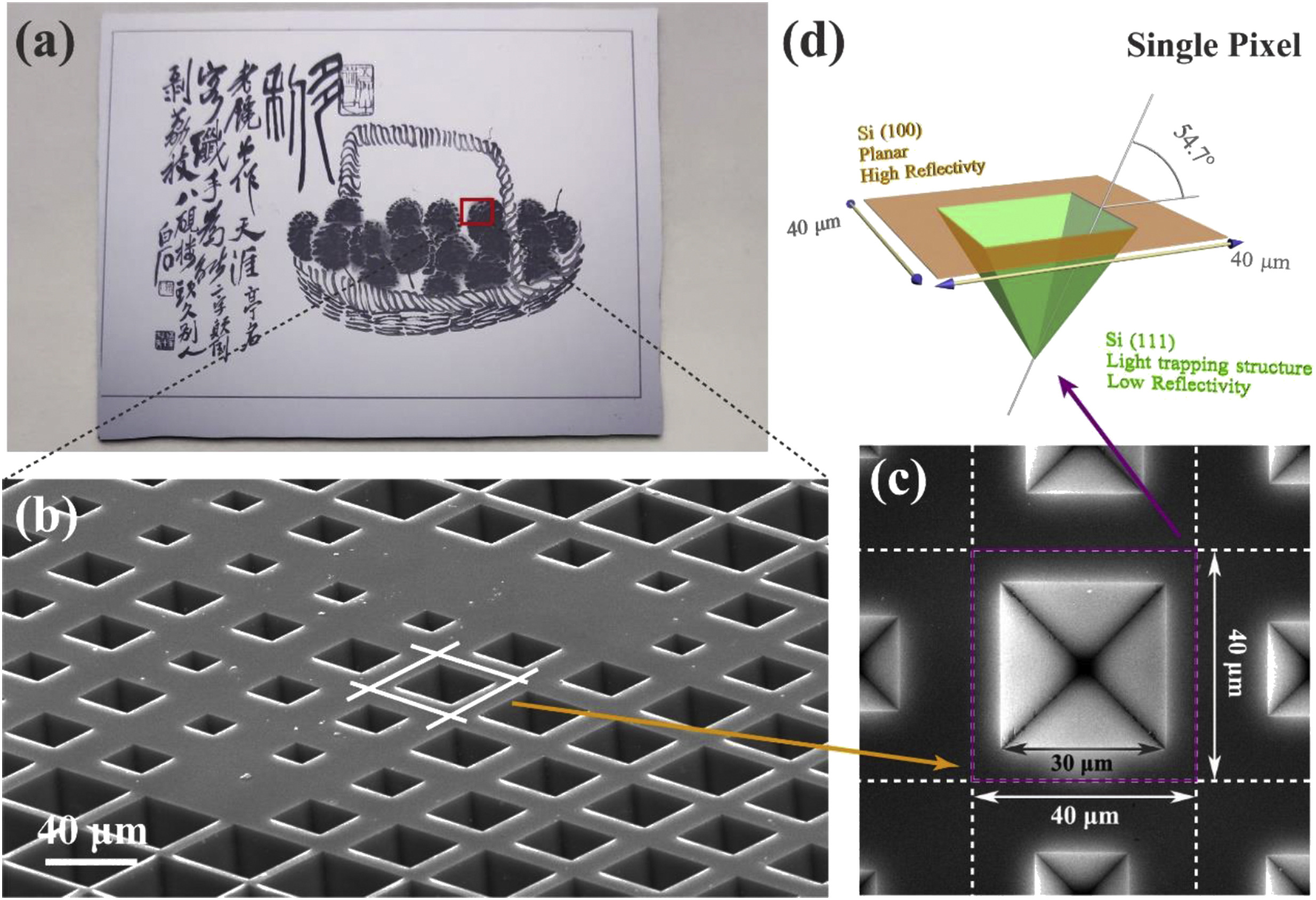 丁可博士、张萌同学的论文"High-resolution image patterned silicon wafer with inverted pyramid micro-structure arrays for decorative solar cells"发表在Mater. Today Energy上