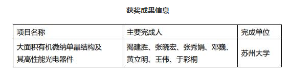 近日,江苏省人民政府发布了《省政府关于2020年度江苏省科学技术奖励的决定》(苏政发〔2021〕3号)。本团队的研究成果“大面积有机微纳单晶结构及其高性能光电器件”荣获2020年度江苏省科学技术奖一等奖,在此谨向揭建胜教授团队表示热烈的祝贺!