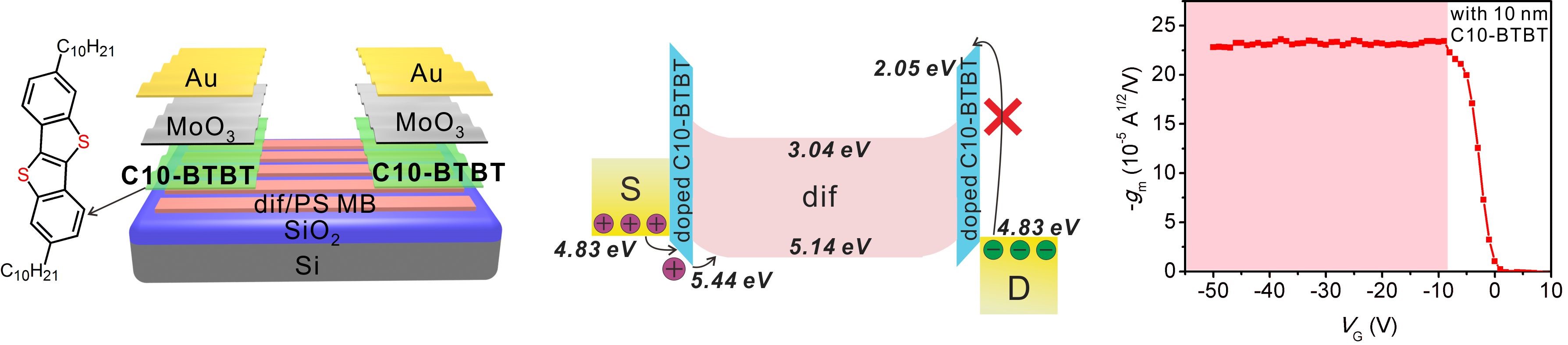 <span style="color:#1C1D1E;font-family:" font-size:16px;white-space:normal;background-color:#ffffff;"="">Electron injection plays a crucial role in arousing the double‐slope characteristics for p‐type organic field‐effect transistors (OFETs) with narrow‐bandgap organic semiconductors (OSCs). This issue will not only result in the misrepresentation of OFET performance but also may cause device instability, hence impeding their further development in real‐world applications. A facile and highly efficient approach is developed to circumvent this issue by implementing modification on the electrode/organic semiconductor interface. An ultrathin layer of wide‐bandgap OSC with suitable energy levels is introduced to block the undesirable electron injection. By this means, typical double‐slope behaviors and bias stress stability in the p‐type OFETs can be significantly improved. Using 2,8‐difluoro‐5,11‐bis(triethylsilylethynyl) anthradithiophene‐based OFETs the double‐slope behaviors of as‐fabricated devices are effectively converted to near‐ideal behaviors after modification, leading to a dramatic improvement of average reliability from 65.11% to 91.76%. Furthermore, the positive drift of transfer curves under prolonged bias stress is also successfully suppressed. This strategy demonstrates good universality and can provide a new guideline for the fabrication of OFETs with ideal behaviors.