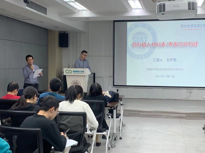 2021年11月1日,很荣幸邀请到中国科学院深圳先进技术研究院王怀雨研究员,王怀雨研究员以“骨科植入材料表/界面功能构建”为题进行学术报告。同学们通过报告受益良多,并与王怀雨研究员展开了热烈的讨论。