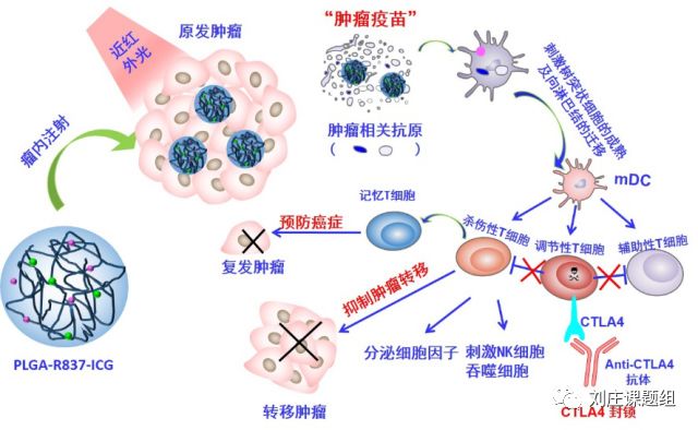 这项工作利用光热消除原发性肿瘤产生的癌细胞相关抗原和R837的纳米可以作为癌症相关“疫苗”,在与anti-CTLA4的联合使用下很有可能可以有效地消融多种原发性肿瘤,抑制肿瘤转移,并触发强免疫记忆效应,防止肿瘤的复发。
