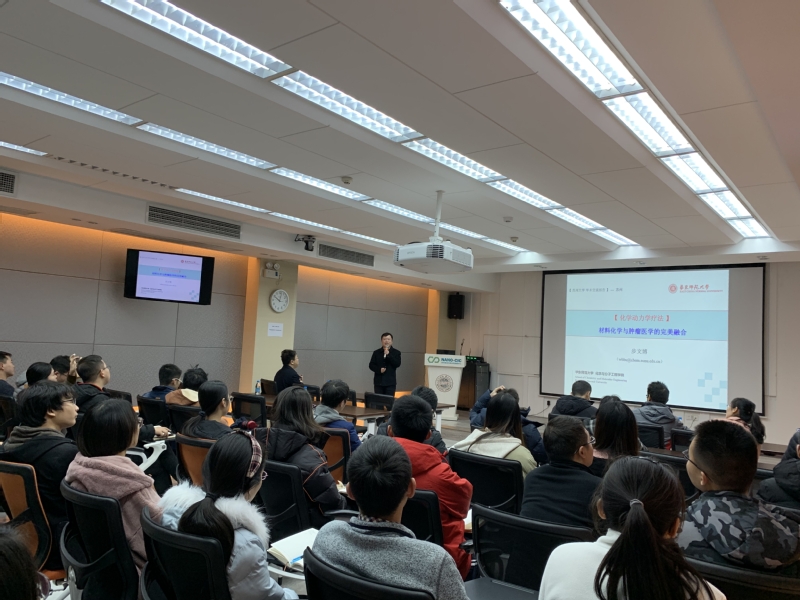 2019年12月6日,很荣幸邀请到华东师范大学步文博教授,步文博教授以“化学动力学疗法:材料化学与肿瘤医学的完美融合”为题进行学术报告。同学们通过报告受益良多,并与步文博教授展开了热烈的讨论。