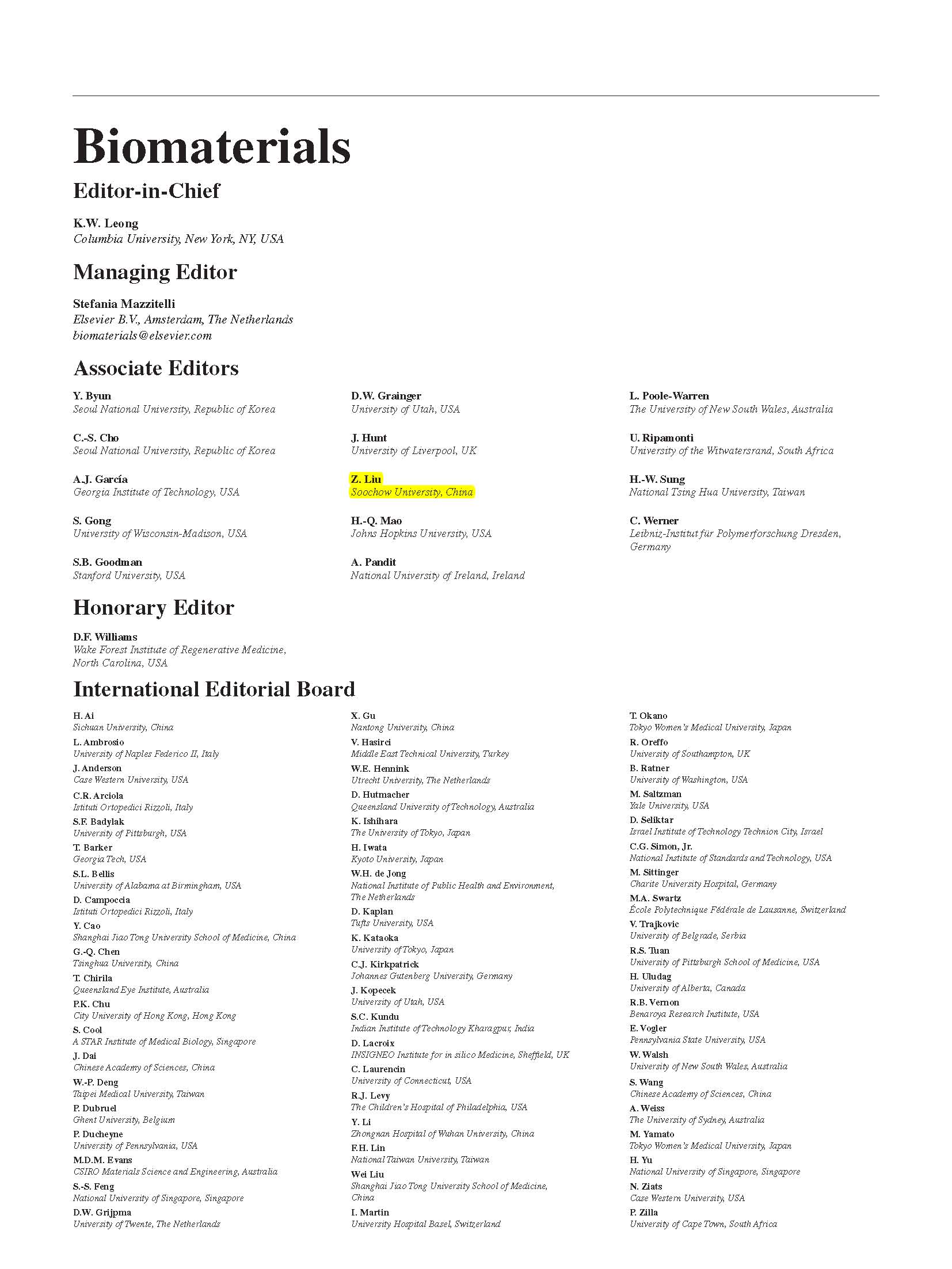 Biomaterials编委名单: