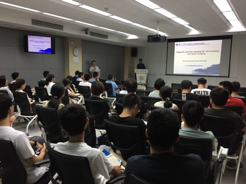 2018年7月27日,很荣幸请到湖南大学宋国胜教授来访交流,宋国胜教授曾在课题组从事博士后研究,后前往斯坦福大学继续深造,现以被湖南大学聘为特聘教授,并获得“岳麓学者”称号,上午以磁性纳米粒子成像探针的开发及在活体应用中的新技术为题进行学术报告,同学们通过报告受益良多,并与宋教授展开了热烈的讨论。