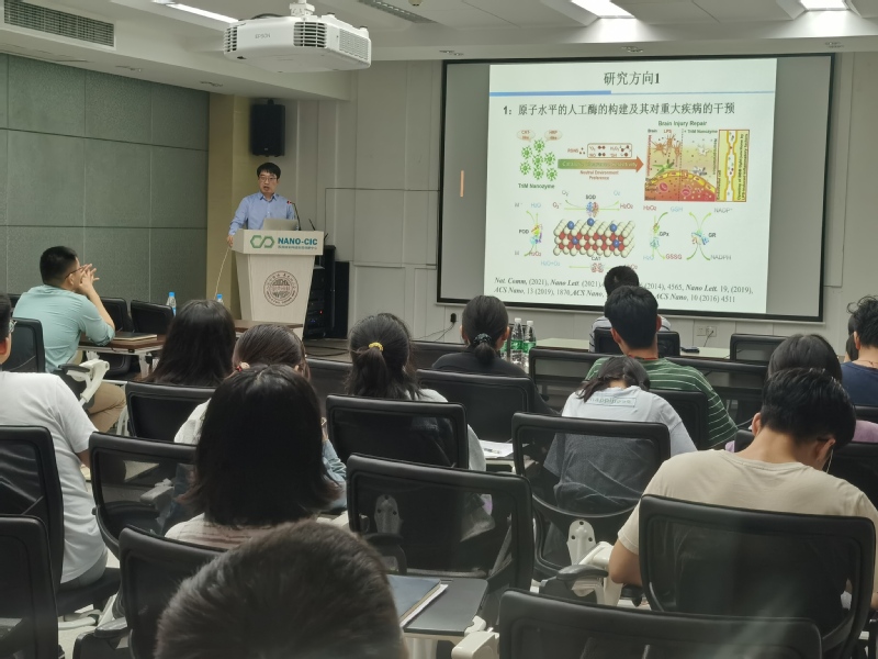 2021年6月2日,很荣幸邀请到天津大学张晓东教授,张晓东教授以“原子精度团簇酶的构建及其对神经炎症的调控”为题进行学术报告。同学们通过报告受益良多,并与张晓东教授展开了热烈的讨论。