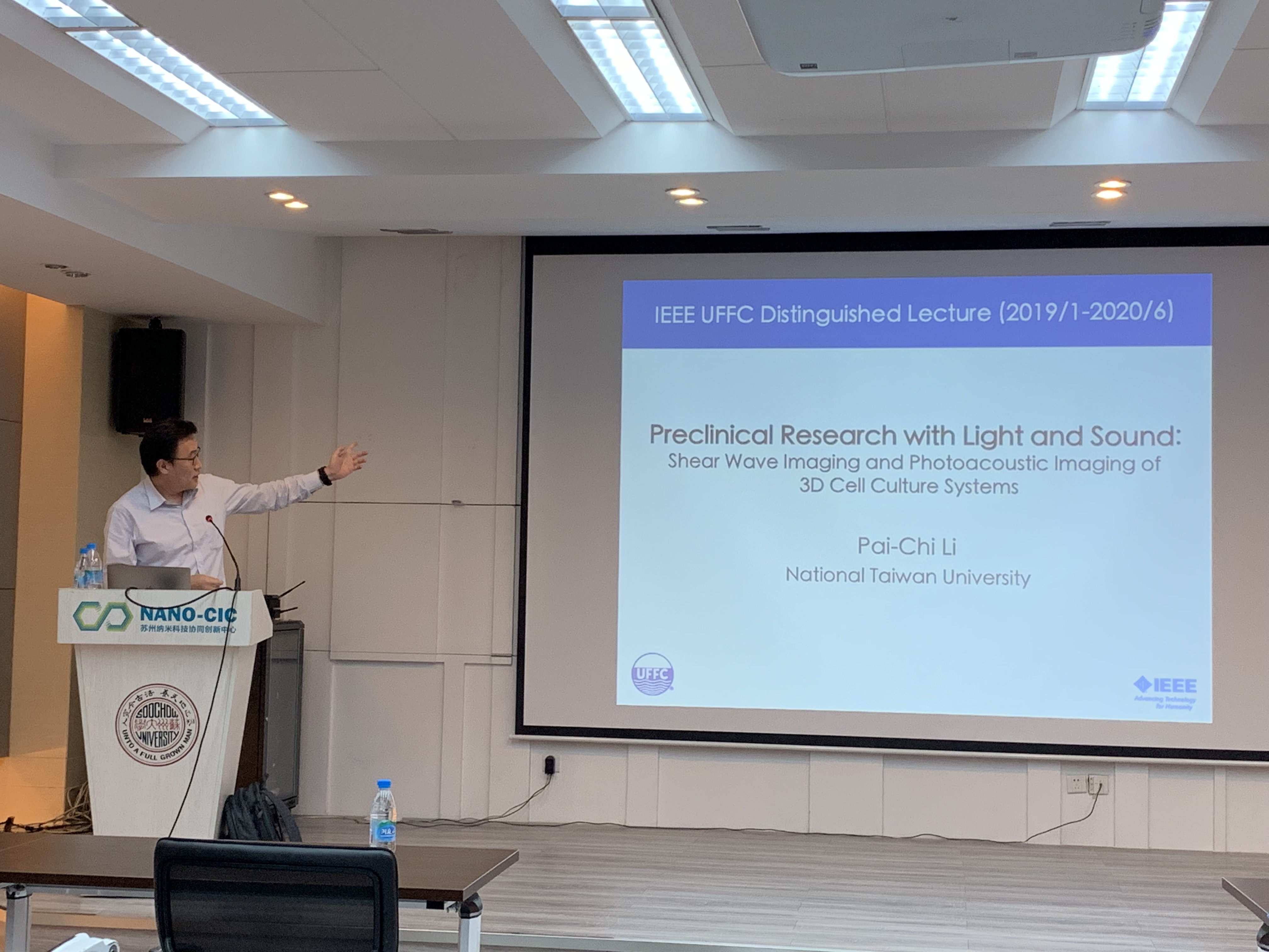2019年6月17日,很荣幸邀请到台湾大学 Pai-Chi Li 教授,Pai-Chi Li 教授以Preclinical research with light and sound: shear wave imaging and photoacoustic imaging of 3D cell culture systems为题进行学术报告。同学们通过报告受益良多,并与Pai-Chi Li 教授展开了热烈的讨论。