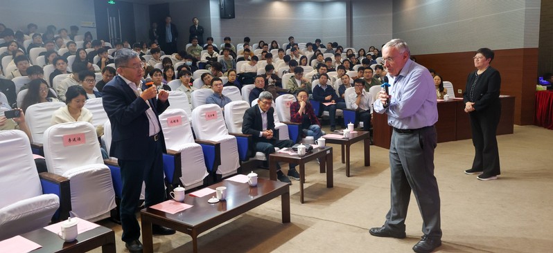 During the ceremony, Shen Mingrong, on behalf of the university, presented Klaus Müllen with the chair professor appointment letter and a commemorative gift. Klaus Müllen delivered a report titled "Carbon Nanostructures by Design-A Discovery Tour from Synthesis to Function," sharing his research experiences, academic achievements, and life insights.