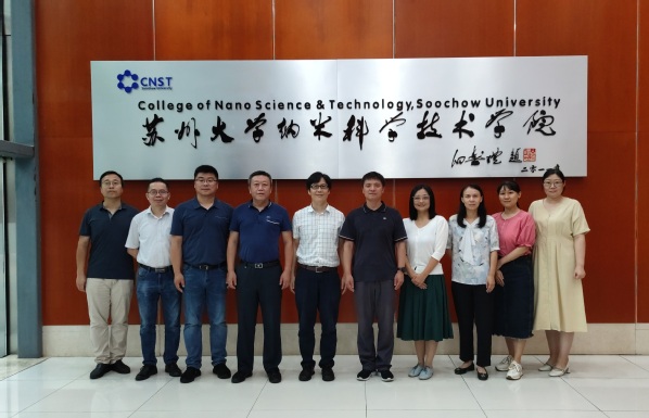 On September 27, a delegation led by Professor Guo Yupeng, Associate Dean of the College of Chemistry at Jilin University, visited the College of Nano Science & Technology (CNST) at Soochow University for a collaborative exchange. The delegation held in-depth discussions with the CNST teaching team on the development of science and engineering undergraduate programs and the cultivation of top-notch talents. CNST attendees included Professor Wang Suidong, Associate Dean of Academic Affairs, Wang Lu, Dean Assistant, and faculty representatives Jiang Lin, Fan Jian, and Ma Yanyun.