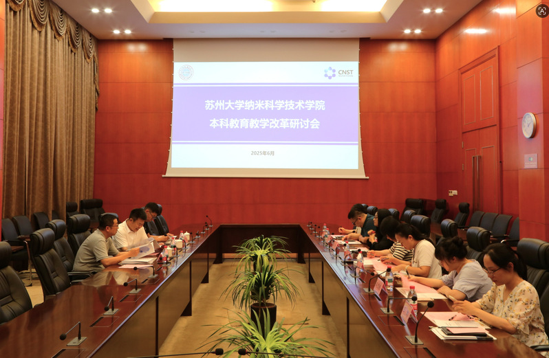 On June 20, a Teaching Reform Seminar was successfully held at the College of Nano Science & Technology (CNST), Soochow University. Professor Wu Xiaoshan (Nanjing University, member of the MoE’s Teaching Guidance Committee), Professor Lyu Jingtao (Huazhong University of Science and Technology), and Professor Zhao Jijun (South China Normal University) were present. The experts gathered with CNST key faculty members to discuss talent development in nanoscience. Attendees included Associate Dean Wang Lu, Assistant Dean Liu Yang, and faculty representatives Wen Zhen, Huang Hui, and Ma Yanyun.